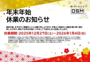 誠に勝手ながら下記日程を年末年始休業とさせていただきます。